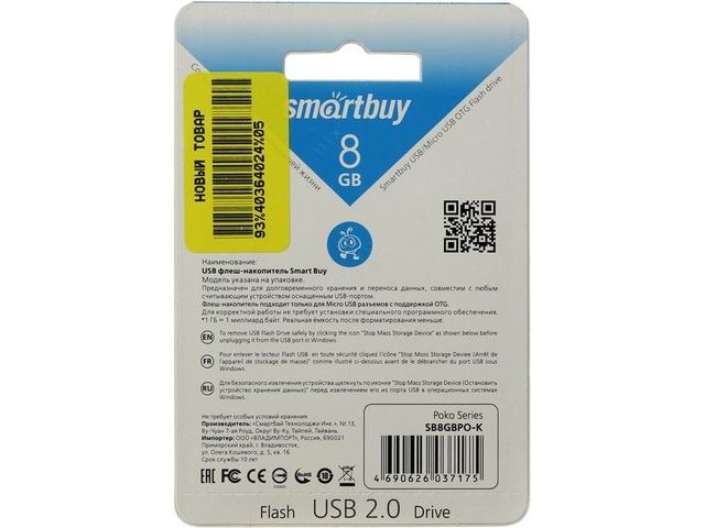 SmartBuy SB8GBPO-K USB2.0/USB micro-B OTG Flash Drive 8Gb (RTL)