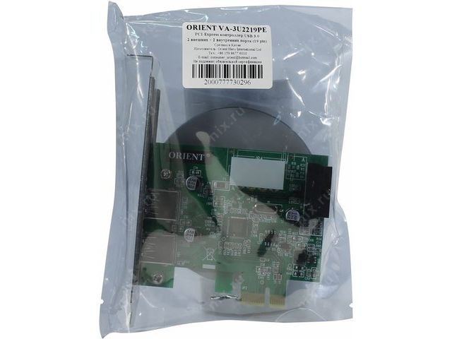 Orient VA-3U2219PE (OEM) PCI-Ex1, USB3.0, 2 port-ext, 19 pin port-int