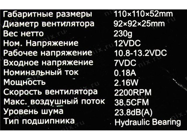 | Размеры установленного на охлаждение вентилятора | 92 x 92 x 25 мм |