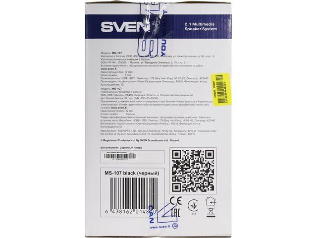 Колонки SVEN MS-107 Black (2x2.5W +Subwoofer 5W, дерево)