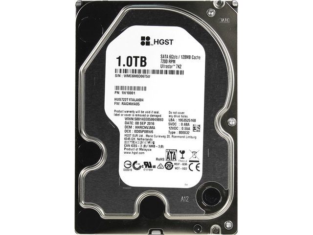 HDD 1 Tb SATA 6Gb/s Western Digital/HGST Ultrastar 7K2  HUS722T1TALA604  3.5 7200rpm 128Mb