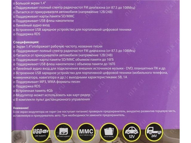 FM-модулятор со встроенным MP3 плеером и большим 1.4 экраном (отображает название песни или рабочую частоту)