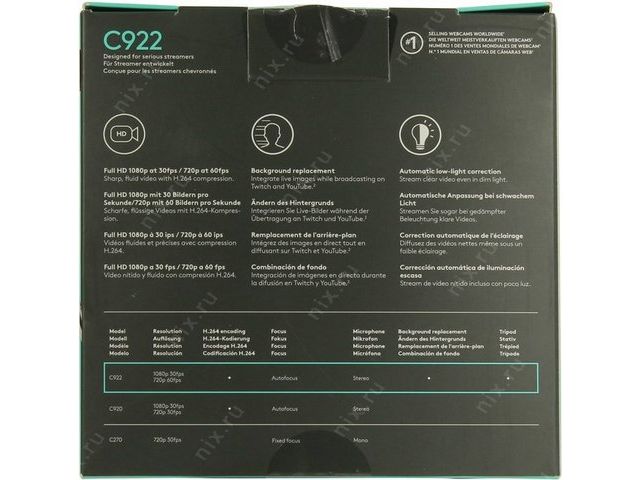 Logitech C922 Pro Stream Webcam (RTL) (USB2.0, 1920x1080, микрофон) 960-001088/960-001089