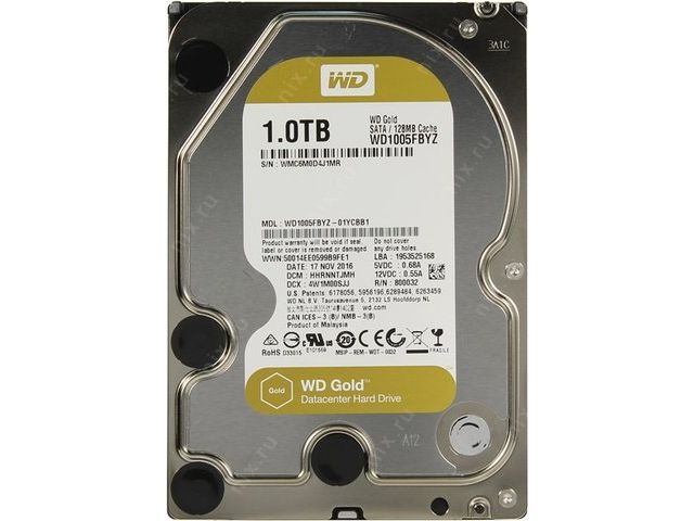 HDD 1 Tb SATA 6Gb/s Western Digital Gold WD1005FBYZ  3.5  7200rpm 128Mb