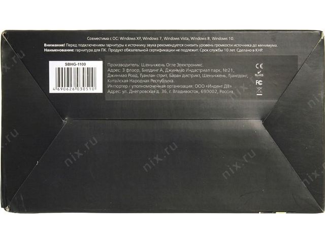 | Крепление наушников | Вертикальная дужка с регулируемым оголовьем |