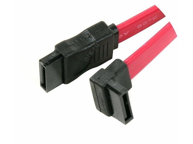 Кабель Serial ATA длиной 50 см с Г-образным коннектором. Использование такого кабеля облегчает установку HDD в корпуса с поперечным расположением корзины.