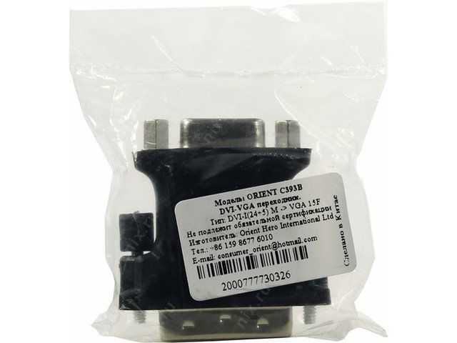 Orient C393B Переходник DVI-I (29M)-- VGA (15F)