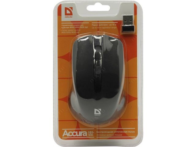 Defender Accura Wireless Optical Mouse MM-935 Black  (RTL) USB3btn+Roll 52935