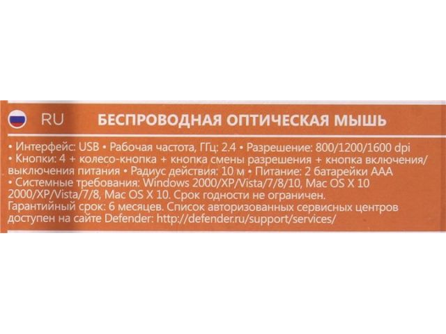 Defender Wireless Optical Mouse Accura MM-665 Grey  (RTL) USB6btn+Roll беспр. 52666