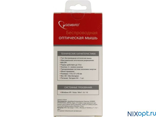 Беспроводная Мышь Gembird MUSW-320 (USB 2.0, 3btn, 1000 dpi)