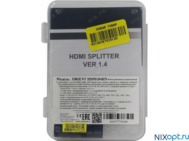 Orient HSP0104HN HDMI Splitter (1in - 4out, ver1.4) + б.п.