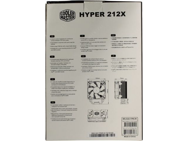 Cooler Master RR-212X-17PK-R1  Hyper 212X (4пин,775/1155/1366/2011/AM2/AM3/FM1,13-28.6дБ,600-1700об/м,тепл.тр.)