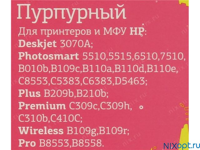 | Совместимость | HP Deskjet 3070A, HP Photosmart 5510, 5515, 6510, 7510, B010b, B100e, B109c, B110a, B110d, C6383, C8383, C8553, D5463, HP Photosmart Plus B209b, B210b, HP Photosmart Premium C309c, C309h, C310b, C410c, HP Photosmart Pro B8553, B8558, HP Photosmart Wireless B109g, B109r |