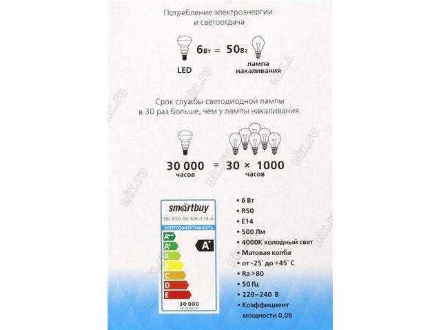 | Лампа светодиодная SmartBuy SBL-R50-06-40K-E14-A |