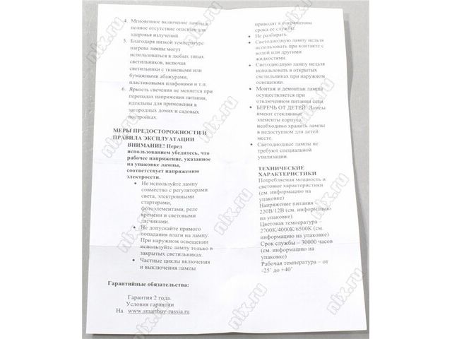 | ПРЕДУПРЕЖДЕНИЕ | Некоторые лампы обладают плавающими характеристиками и могут незначительно поменять характеристики с очередной поставкой. Характеристики и фотографии, приведенные нами, имеют справочный характер и могут отличаться при получении. Просьба проверять соответствие товара при выдаче. |