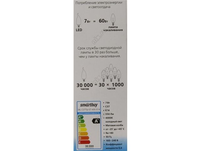 | Эквивалент лампы накаливания | 60 Вт |