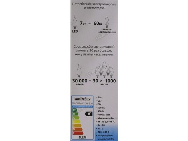 | Лампа светодиодная SmartBuy SBL-C37Tip-07-30K-E14 |
