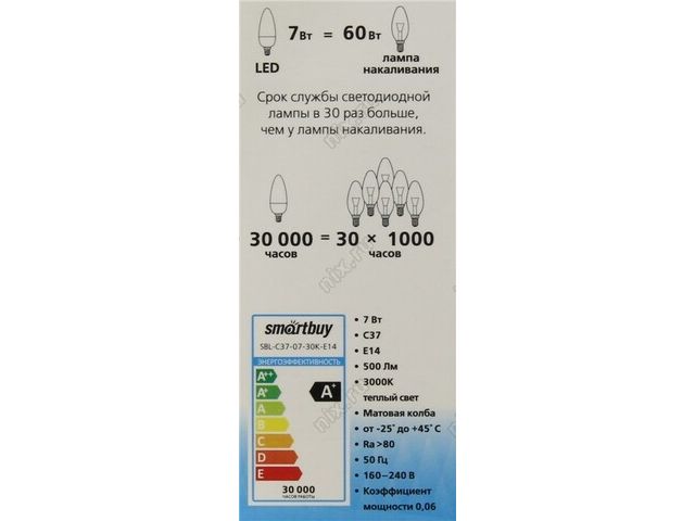 | Лампа светодиодная SmartBuy SBL-C37-07-30K-E14 |