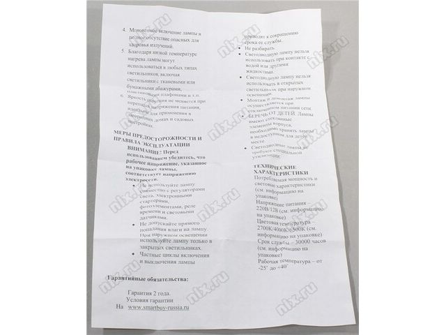 | ПРЕДУПРЕЖДЕНИЕ | Некоторые лампы обладают плавающими характеристиками и могут незначительно поменять характеристики с очередной поставкой. Характеристики и фотографии, приведенные нами, имеют справочный характер и могут отличаться при получении. Просьба проверять соответствие товара при выдаче. |