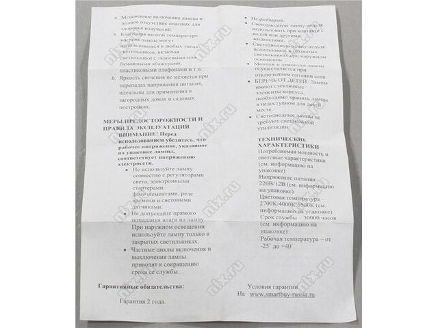 | ПРЕДУПРЕЖДЕНИЕ | Некоторые лампы обладают плавающими характеристиками и могут незначительно поменять характеристики с очередной поставкой. Характеристики и фотографии, приведенные нами, имеют справочный характер и могут отличаться при получении. Просьба проверять соответствие товара при выдаче. |