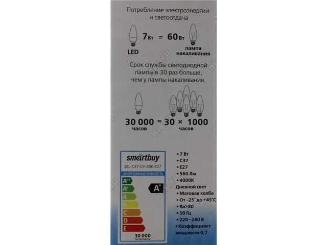 | Лампа светодиодная SmartBuy SBL-C37-07-40K-E27 |