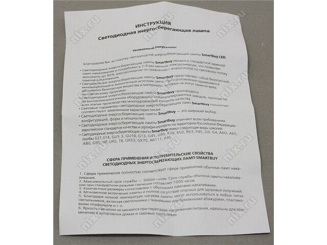 | Тип оборудования | Лампа светодиодная |
