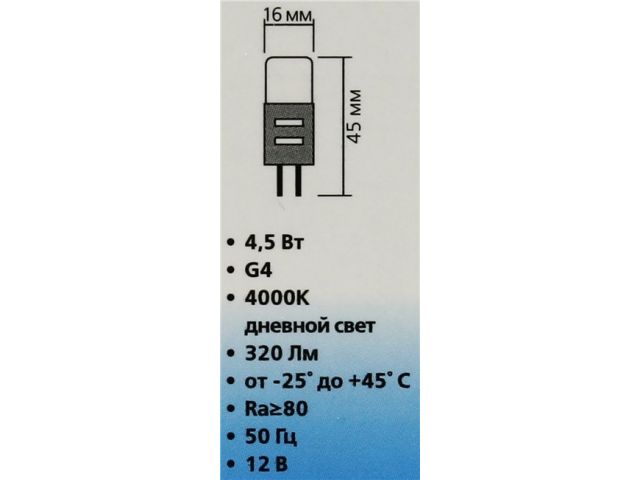 | Цоколь | G4 (капсульный) 12 В |