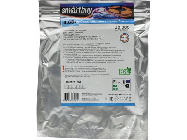 Smartbuy SBL-IP20-4_8-Gr 5м  (5м, 4.8Вт, 12В).