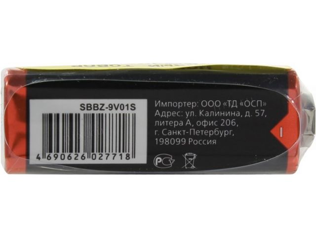 Smartbuy SBBZ-9V01S 9V, солевый, типа Крона