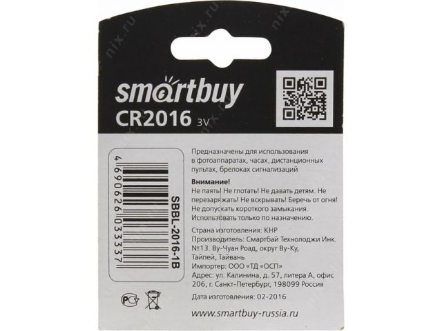 • Smartbuy SBBL-2016-1B CR2016 (Li, 3V)