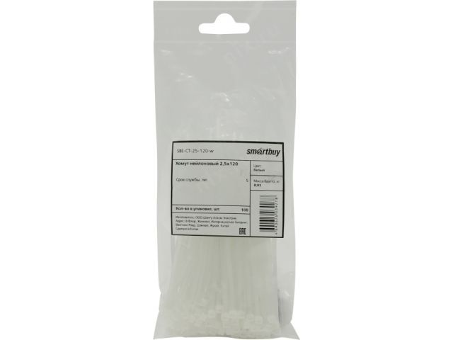 • Smartbuy SBE-CT-25-120-w White Стяжка нейлоновая, неоткрыв. 120 мм, уп-ка 100 шт