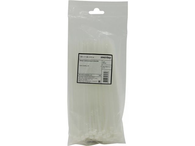 Smartbuy SBE-CT-48-200-w White Стяжка нейлоновая, неоткрыв. 200 мм, уп-ка 100 шт