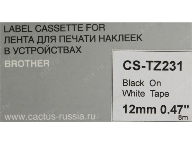 Cactus CS-TZ231 лента для печати этикеток (ширина 12мм, 8м, чёрный на белом)