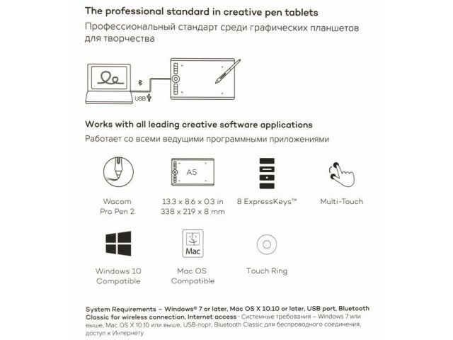Wacom Intuos Pro Medium PTH-660 (8.7 x5.8 , 5080 lpi, 8192 уровня, multi-touch, USB, Bluetooth)