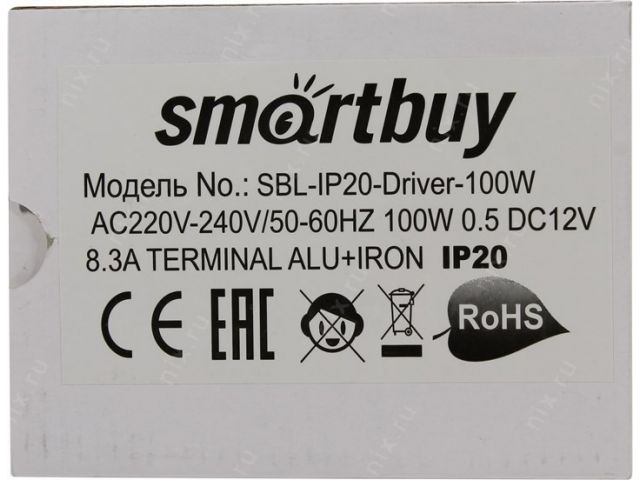 Smartbuy SBL-IP20-Driver-100W Блок питания (вх.AC220-240В, вых DC12В, 100Вт, клеммы)