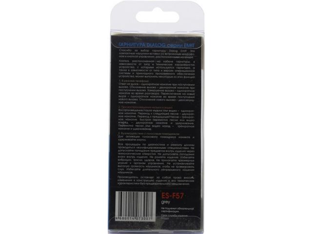 Наушники с микрофоном Dialog ES-F57  Grey  (шнур 1м)