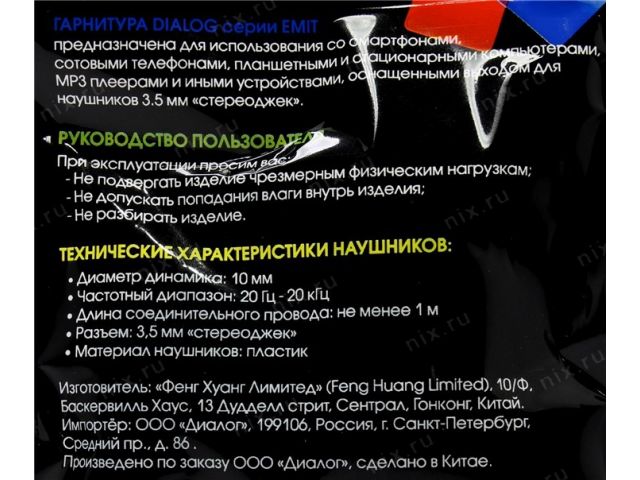 Наушники с микрофоном Dialog ES-50 (шнур 1м)