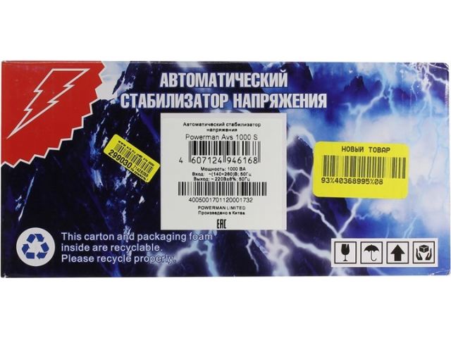 | Стабилизатор напряжения 1000 ВА 1 кВт PowerMan AVS 1000S 1 розетка евростандарт с заземлением |