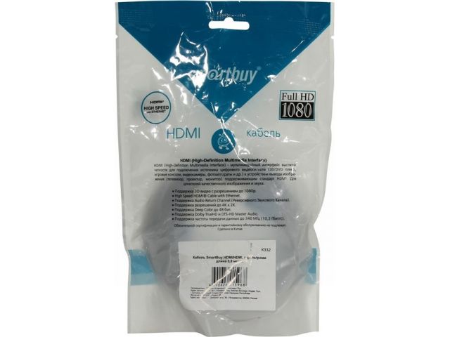 Кабель HDMI - HDMI Smartbuy K332 3 метра