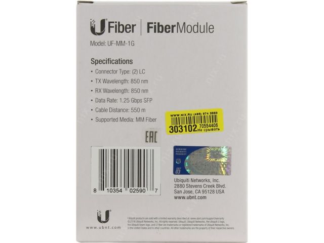 UBIQUITI UF-MM-1G 2 Модуля SFP (Duplex 1000BASE-LC, LC, MM)