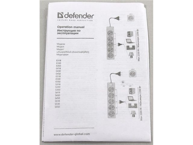 Сетевой удлинитель Defender E550 5м  (5 розеток) 99231