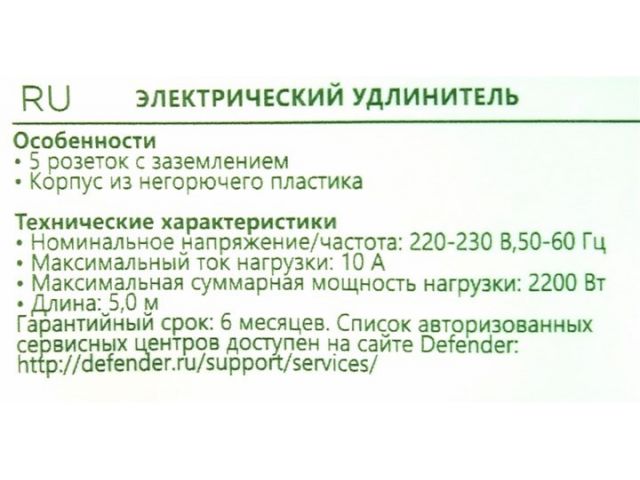 Кол-во выходных розеток5 розеток евростандарт с заземлением