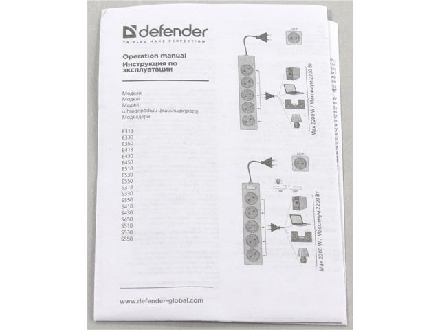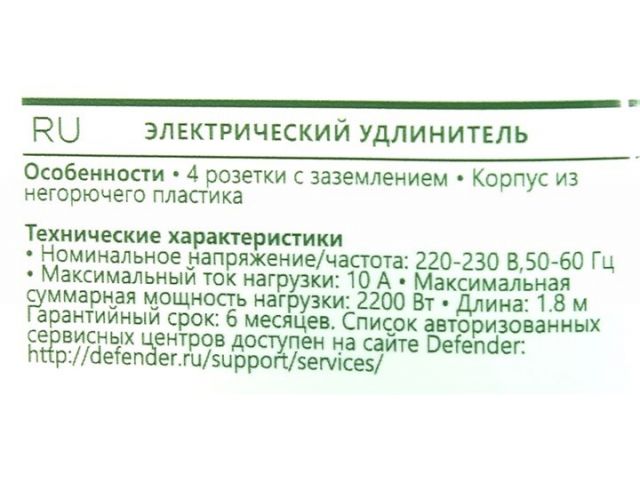 Сетевой удлинитель Defender E418  1.8м (4 розетки) 99225