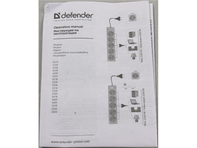 Сетевой удлинитель Defender E450  5м  (4 розетки) 99227