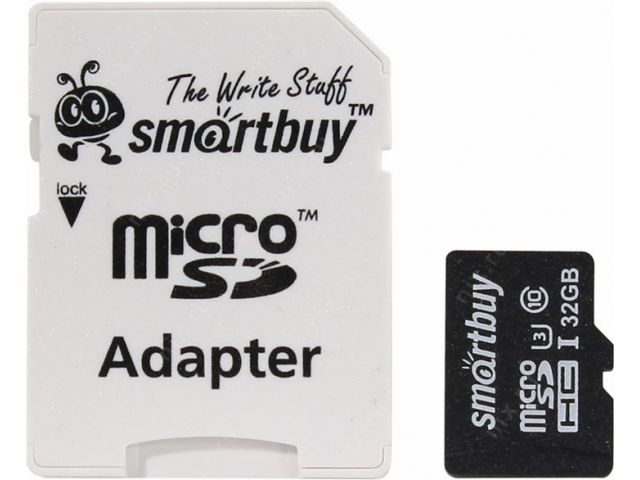 SmartBuy SB32GBSDCL10U3-01 microSDHC 32Gb UHS-I U3 + microSD-- SD Adapter