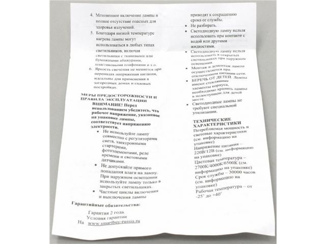 Цветовая температура3000К (тёплый белый свет)