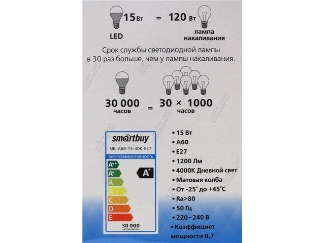 | Лампа светодиодная SmartBuy SBL-A60-15-40K-E27 |