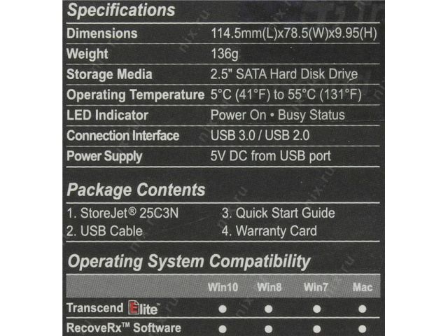 TRANSCEND StoreJet 25C3N TS1TSJ25C3N USB3.0 Portable 2.5 HDD 1TbEXT (RTL)