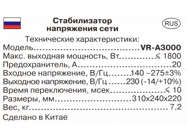 Стабилизатор SVEN VR-A3000 Black (вх.140-275V, вых.198-253V,1800W, клеммы для подключения)