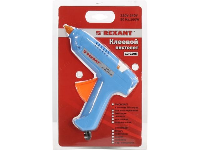 Клеевой пистолет - предназначен для склеивания всевозможных деталей с помощью расплавленной клеевой массы. Данная модель пистолета клеевого оснащена клапаном, который препятствует самопроизвольному вытеканию клея, а также отличается ударопрочным пластмассовым корпусом со скобой для надежной установки в нерабочем положении. Мощность в 100 Вт позволяет быстро разогревать клей и работать без перебоев. С этим пистолетом можно заниматься склеиванием бумаги, дерева, резины, картона, пенопласта, кожи, стекло, металлы и других материалов между собой. Работайте дома или на производстве - пистолет выдержит серьёзные нагрузки за счет простой и надёжной конструкции.